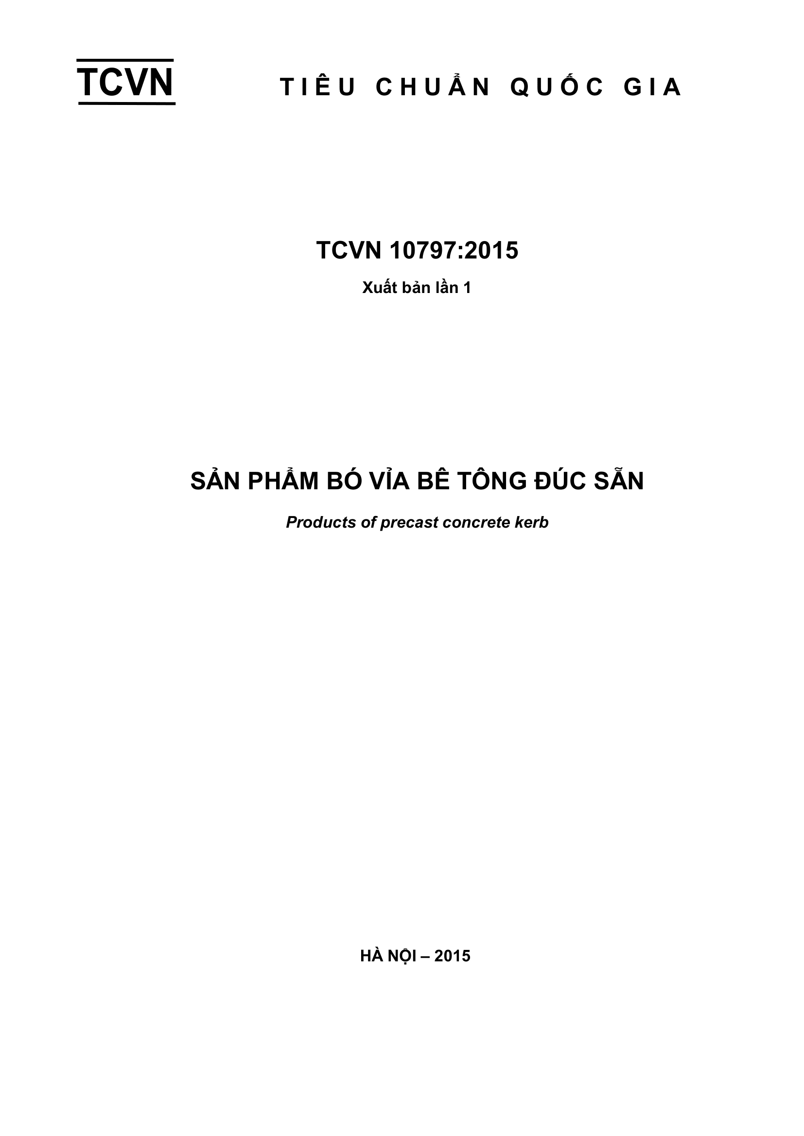 Tcvn 10797:2015 "sản phẩm bó vỉa bê tông đúc sẵn"